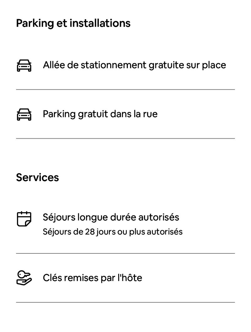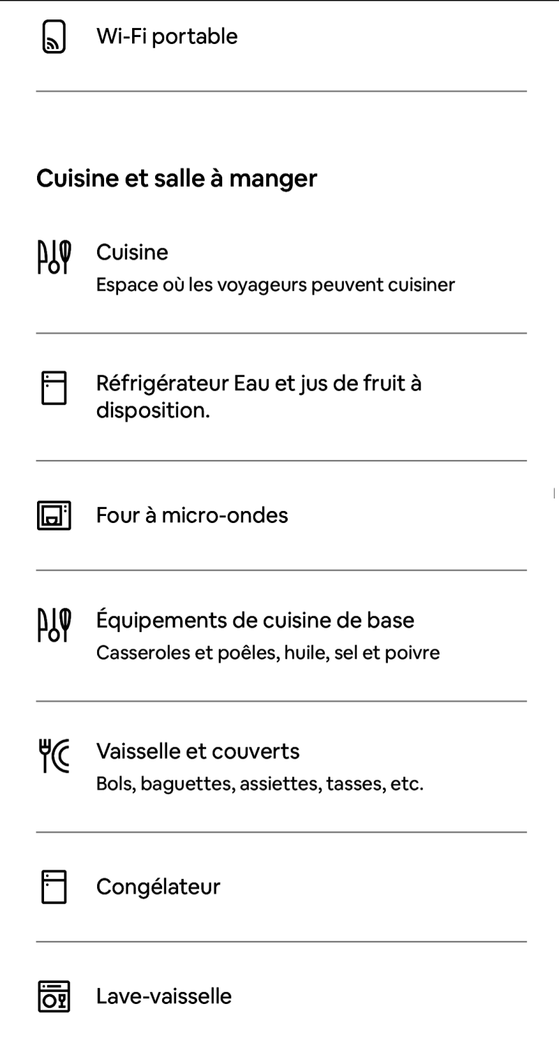 Liste des équipements